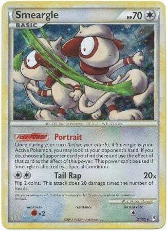 Smeargle Pokémon Card 70 HP - Portrait & Tail Rap Moves 21/95