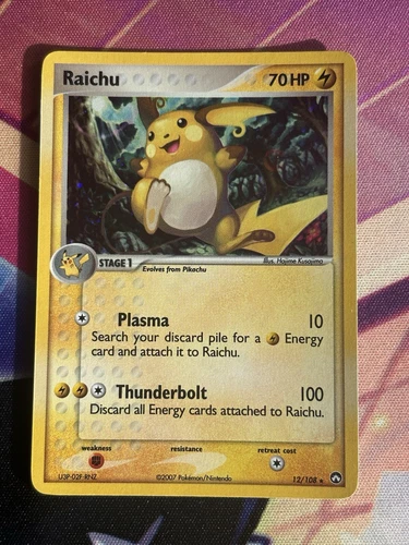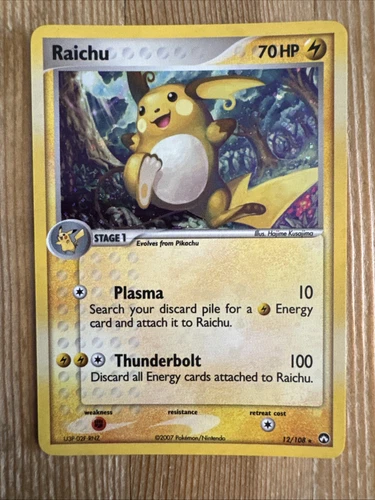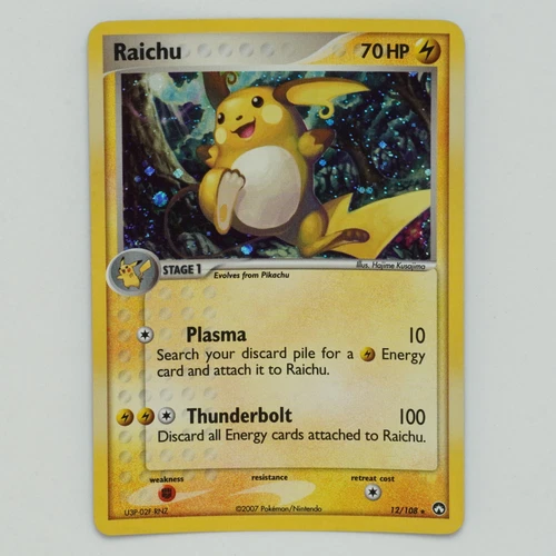2007 Pokémon Raichu - 12/108 - Holo Rare EX Power Keepers - NM with SWIRL