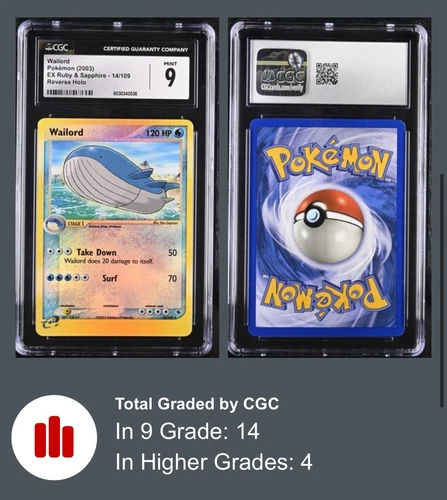 Pokemon EX Ruby & Sapphire 14/109 Wailord Reverse Holo Rare 2003 CGC 9 MINT