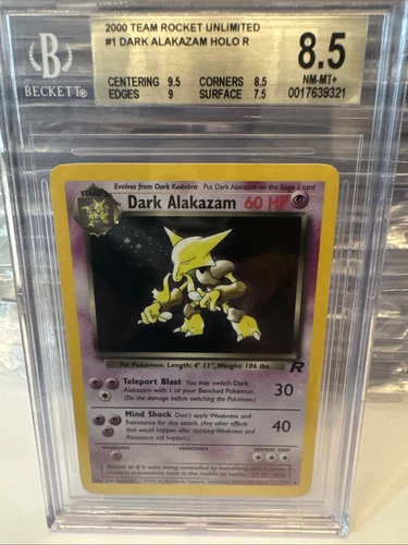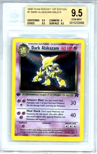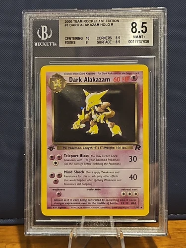 2000 Pokemon Team Rocket 1st Edition Dark Alakazam 1/82 Holo Rare Beckett 8.5
