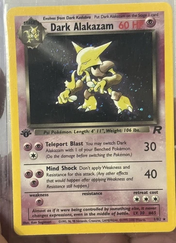 Dark Alakazam 1/82 1st Edition Team Rocket Holo Rare Pokemon Card WOTC