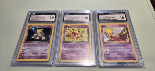 Dark Alakazam 1/82 1st Edition Holo Pokemon & Kadabra & Abra CGC 10 Trio!