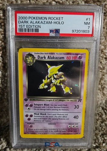 2000 Pokemon Team Rocket Dark Alakazam 1st Ed 1/82 PSA 7