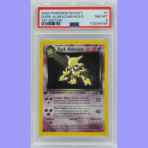 Pokemon 1st Edition Dark Alakazam Holo 1/82 Team Rocket PSA 8 NM/Mint