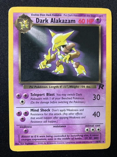 Dark Alakazam Rare - 18/82 Team Rocket Played - Pokemon Card