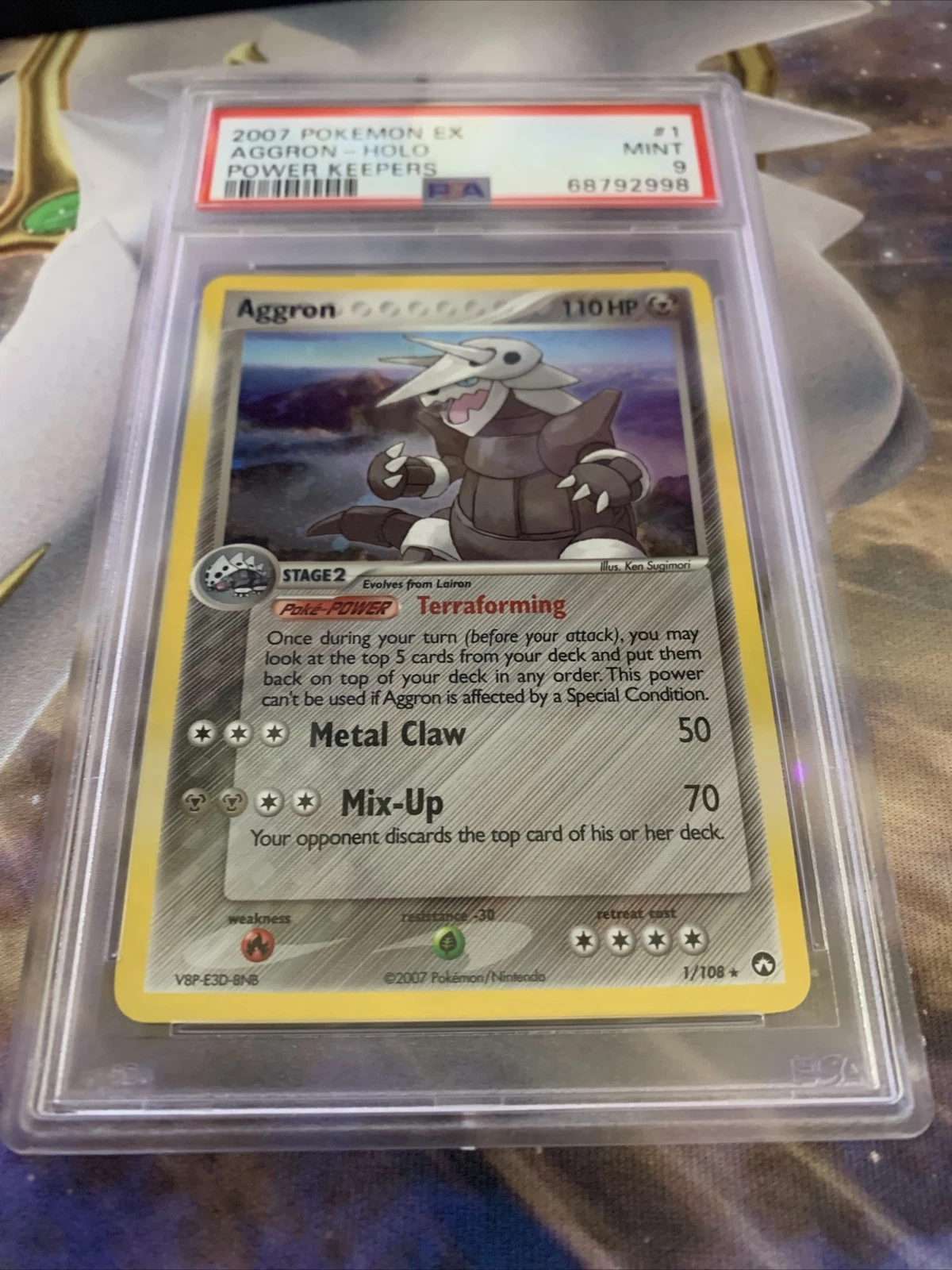 PSA 9 MINT Pokemon AGGRON Holo Rare 2007 ex Power Keepers #1/108