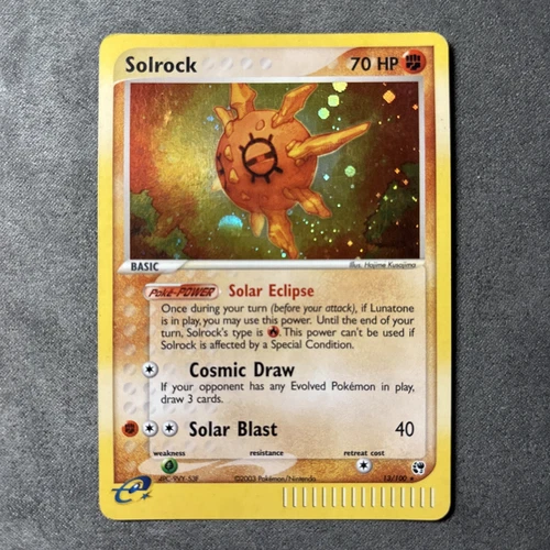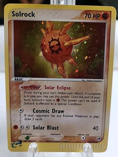 Pokemon 2003 Solrock Holo 13/100 Ex Sandstorm Mint SWIRL! NEVER PLAYED