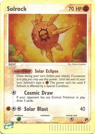 Pokemon TCG Solrock 13/100 Reverse Holo Card (Sandstorm) - Rare - 2003