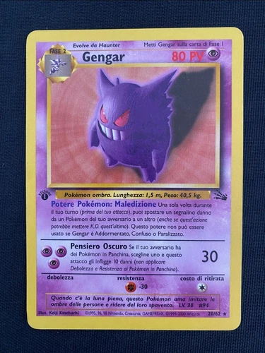 Pokemon Card Gengar 20/62 Fossil First Edition 1 Ed Ita Italian
