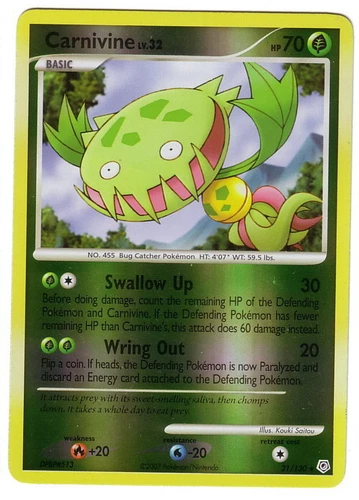 Pokemon Cards: Diamond and Pearl Rare: Carnivine 21/130