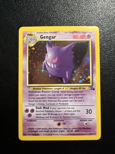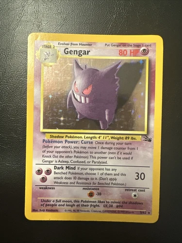 Vintage 1999 Pokemon TCG Fossil Unlimited Gengar Holo 5/62