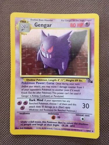 Pokemon TCG Gengar 5/62 Fossil Set Holo Rare Unlimited 1999 WOTC