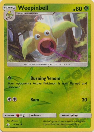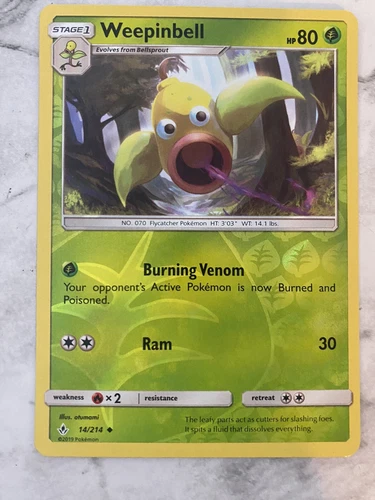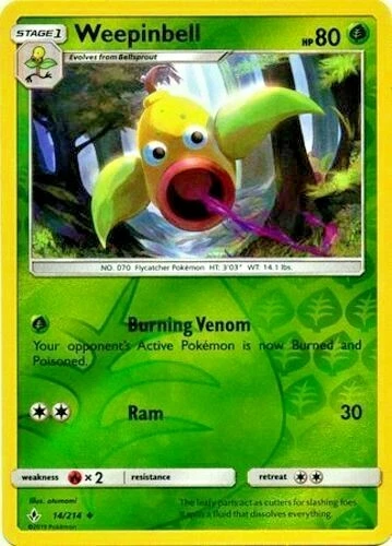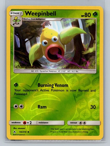 Pokémon TCG - Weepinbell - 14/214 Sun & Moon Unbroken Bonds - Reverse Holo - LP