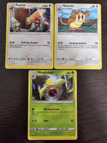 ERROR Fearow 146/214 Raticate 144/214 Weepinbell 14/214 3x MISCUT Pokemon Cards