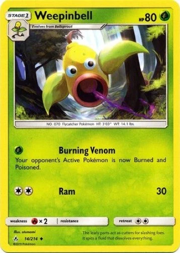 Weepinbell #14/214 Sun & Moon Unbroken Bonds Uncommon Pokemon 2019 TCG Card
