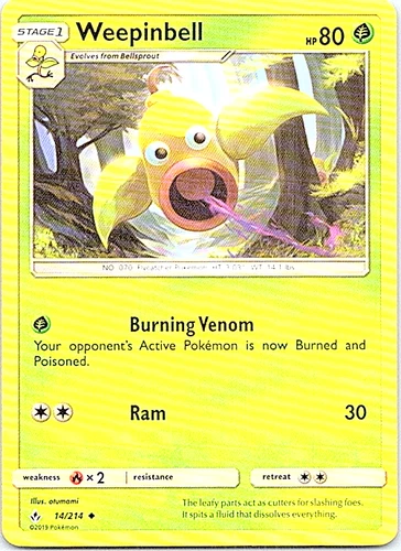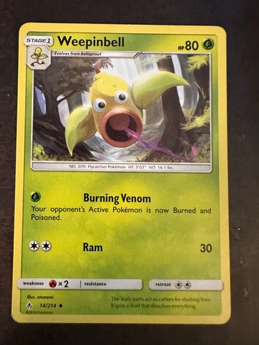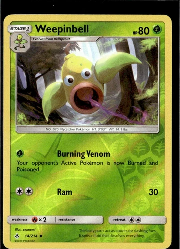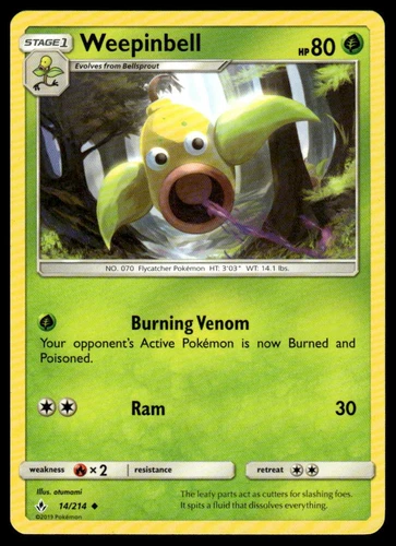 Pokemon SM: Unbroken Bonds Weepinbell #14/214 LP Uncommon