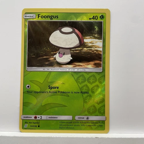 REVERSE HOLO Pokemon Sun & Moon Unified Minds TCG Card Foongus 13/236