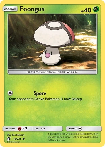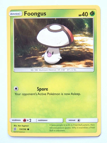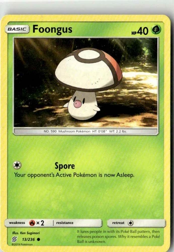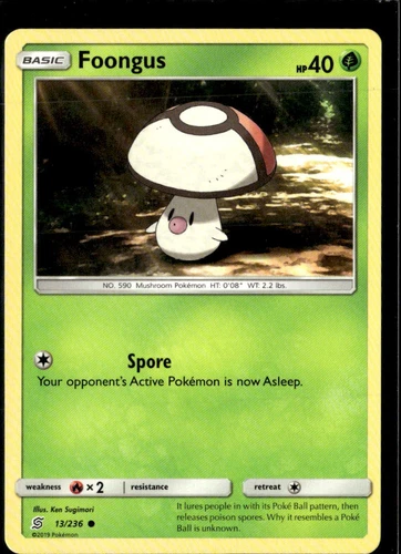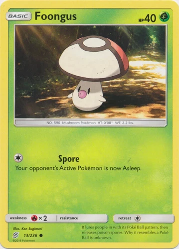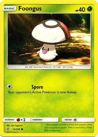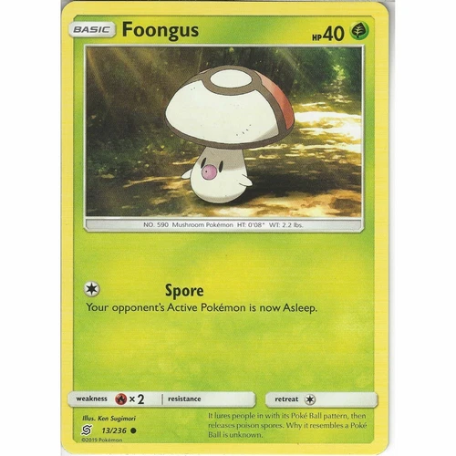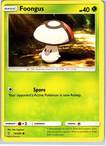 Foongus 13/236 (NM, Pokemon Card, Unified Minds, 2019, Grass, Common)