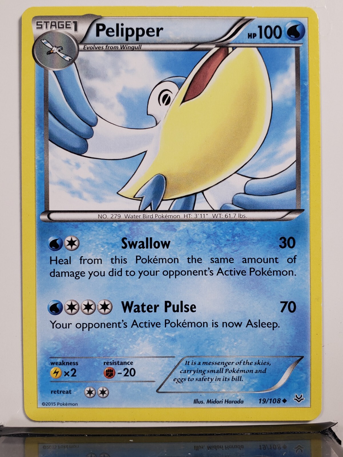 2015 Reverse Holo Pelipper 19/108 Pokemon Card