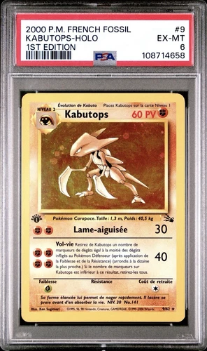 2000 Pokemon FRENCH 1st Edition Fossil Kabutops Holo 9/62 PSA 6 EX-MT