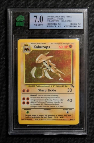 1999 FOSSIL SET ~ UNLIMITED KABUTOPS ~ HOLO RARE #9/62 (WOTC): MNT 7.0