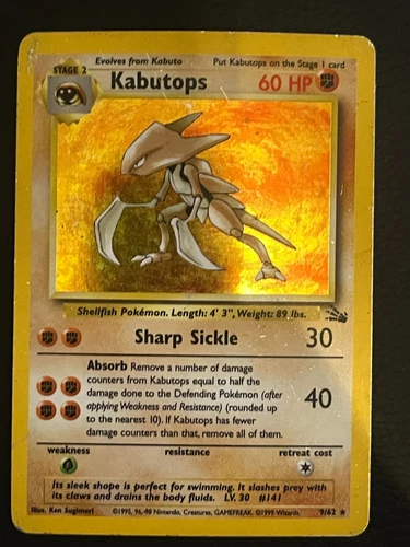Kabutops Pokemon Card 9/62 - Fossil Set - Holo Rare - 1st Gen 1999