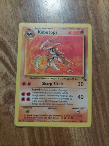 Kabutops 24/62 Fossil Rare Non-Holo Vintage Pokemon TCG Card - PLAYED