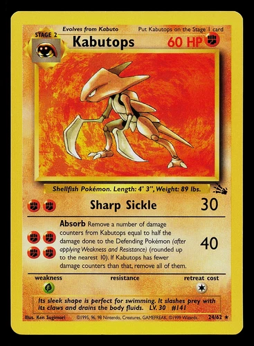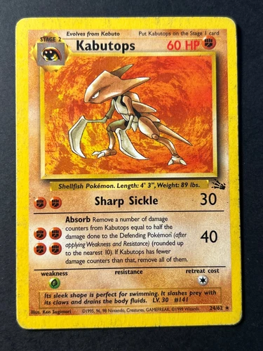 Pokémon Kabutops 24/62 1999 WOTC Fossil Set Ungraded
