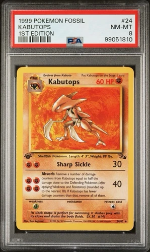 1999 Pokemon - 1st Edition Kabutops Non-Holo Fossil 24/62 - PSA 8 - WOTC