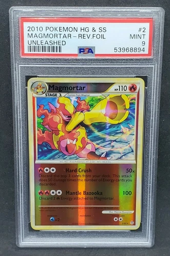 Pokemon PSA 9 MINT Magmortar 2/95 HS Unleashed Reverse Holofoil 2010 Foil Pop. 2
