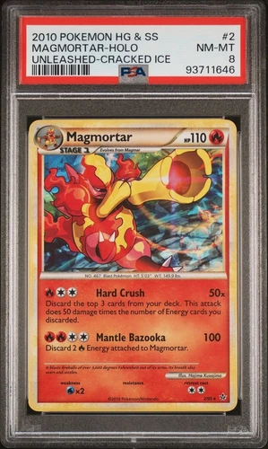 PSA 8 NM-MT Pokemon Magmortar Unleashed Cracked Iced Holo 2/95