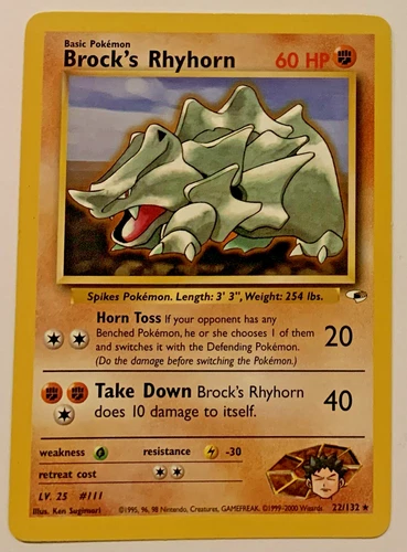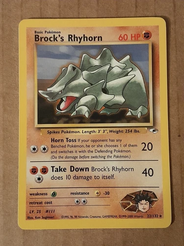 Pokemon TCG 2000 Gym Heroes Set: Brock’s Rhyhorn 22/132 Non-Holo Rare Card - MP