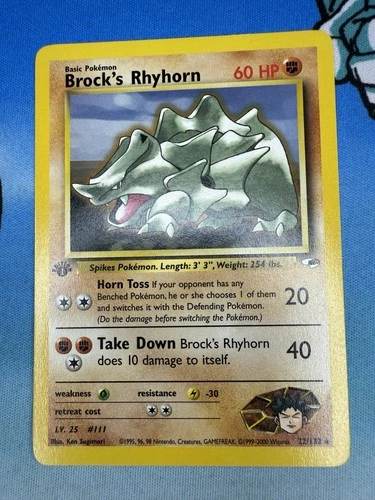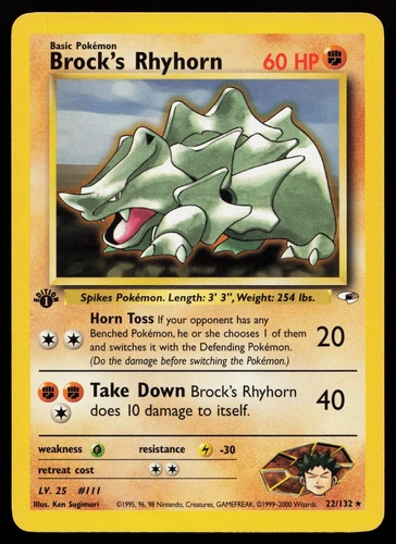 Brock’s Rhyhorn 22/132 1st Edition Gym Heroes WOTC Pokemon Card