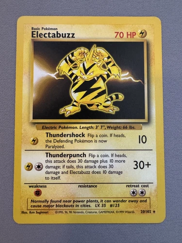MP Pokémon TCG Electabuzz Base Set 20/102 Regular Unlimited Rare WOTC VINTAGE