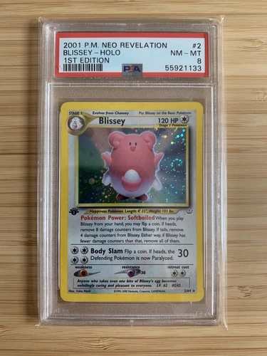 Pokémon Blissey 1st Edition Neo Revelation Holo 2/64 Swirl PSA 8 (55921133)