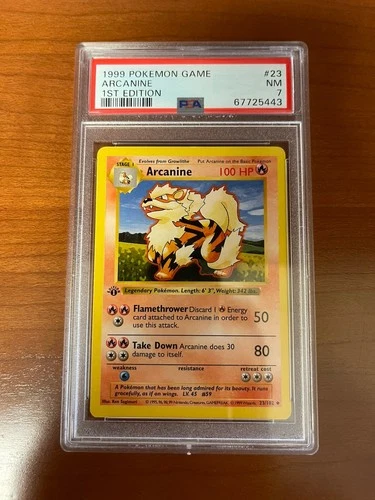 Pokemon 1999 1st Edition Arcanine Base Set Shadowless #23/102 PSA 7 NEAR MINT