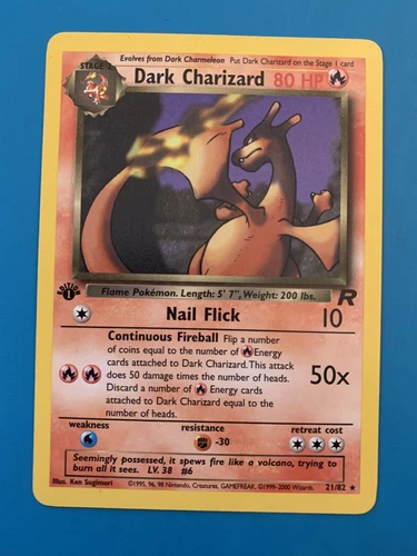 NM (Unlimited) Pokemon DARK CHARIZARD Card TEAM ROCKET Set 21/82 Non-Holo RARE#7
