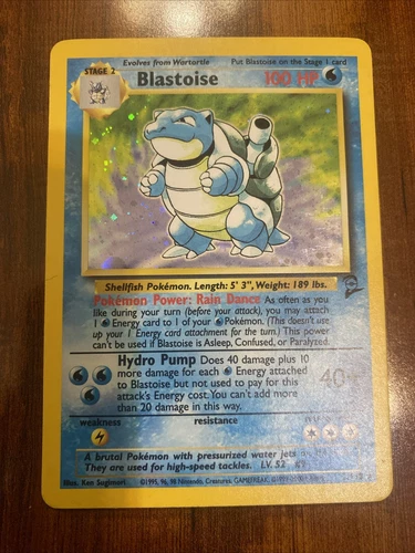 1999 Blastoise Holo Rare Pokémon Card TCG 2/102 Base Set: DMG Vintage WOTC