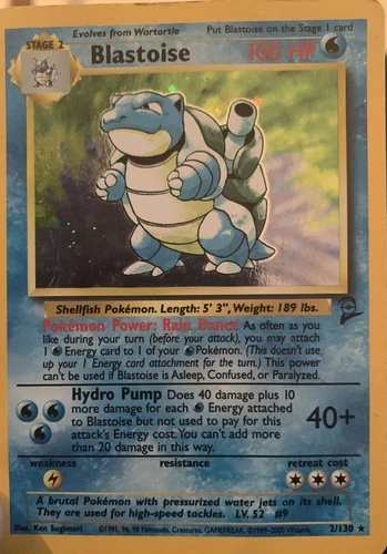 Pokemon Card Blastoise 2/130 Base Set 2 Holo WOTC Near Mint