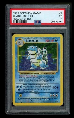 PSA 1 ILLUS ERROR? Blastoise 2/102 Base Set 1999 Holo Rare WOTC Pokémon Card TCG