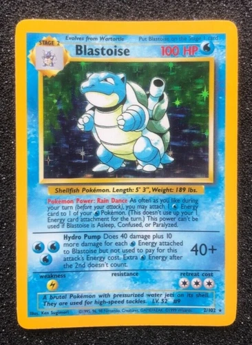 1999 Pokémon Trading Card Game Blastoise Holo 2/102 Base Set Rare Wotc