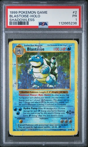 PSA 1 1999 Pokemon Base Set Blastoise 2/102 Holo Foil WOTC