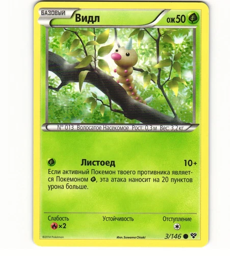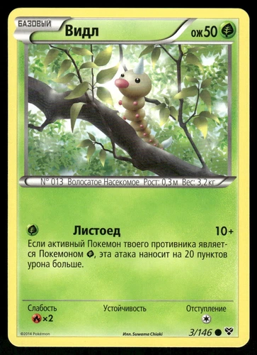 2014 Near Mint Pokemon 3/146 Weedle XY Base Set RUSSIAN Non Holo