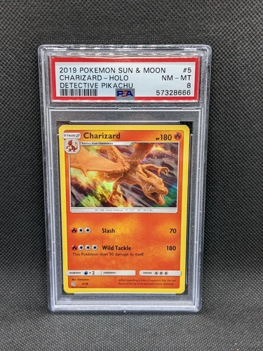 PSA 8 CHARIZARD 5/18 Detective Pikachu Holo Rare Pokémon Card NM - MINT
