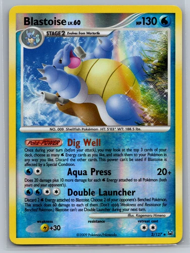 Pokémon TCG Blastoise 2/127 Holo Rare 2009 Platinum Base Set MP Chipped Edge