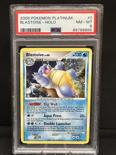 2009 Pokémon Blastoise Platinum Base Set 2/127 - Holo Rare - PSA 8 NM-MINT