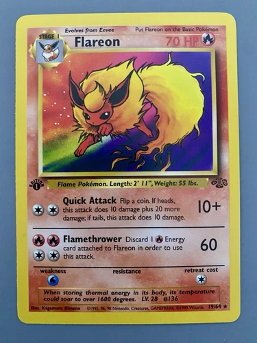 Flareon 19/64 Jungle Regular 1st Edition Pokémon Vintage 1999 WotC