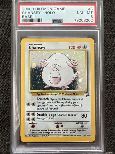 2000 Pokemon Holo Chansey 3/130 PSA 8 NM-MT Base Set 2