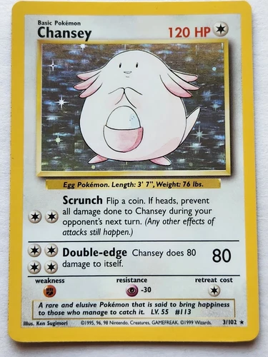 Chansey 3/102 Holo Rare Pokemon Base Set Original WoTC 1999