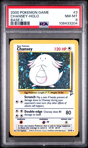 2000 Pokemon Holo Chansey 3/130 PSA 8 NM-MT Base Set 2